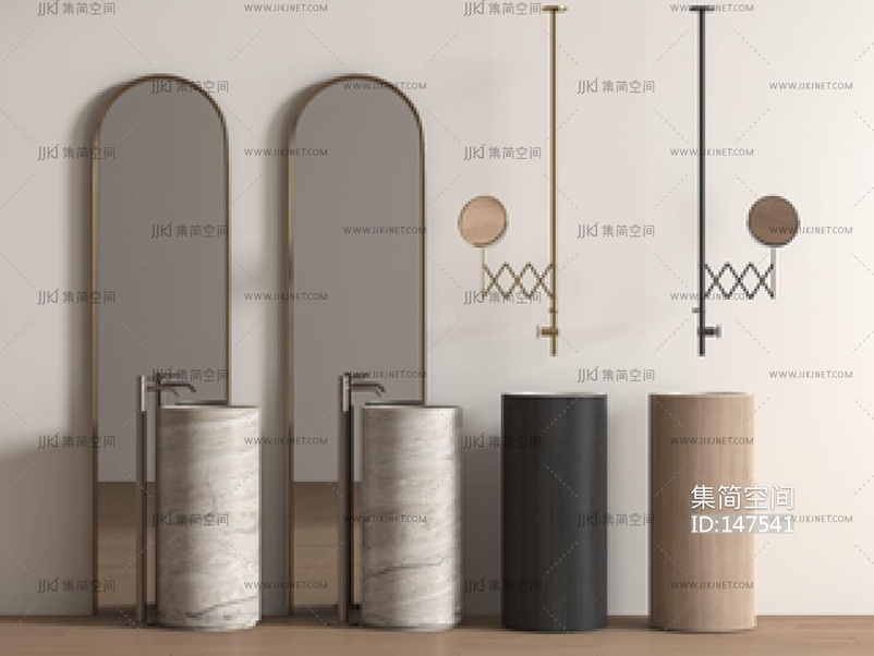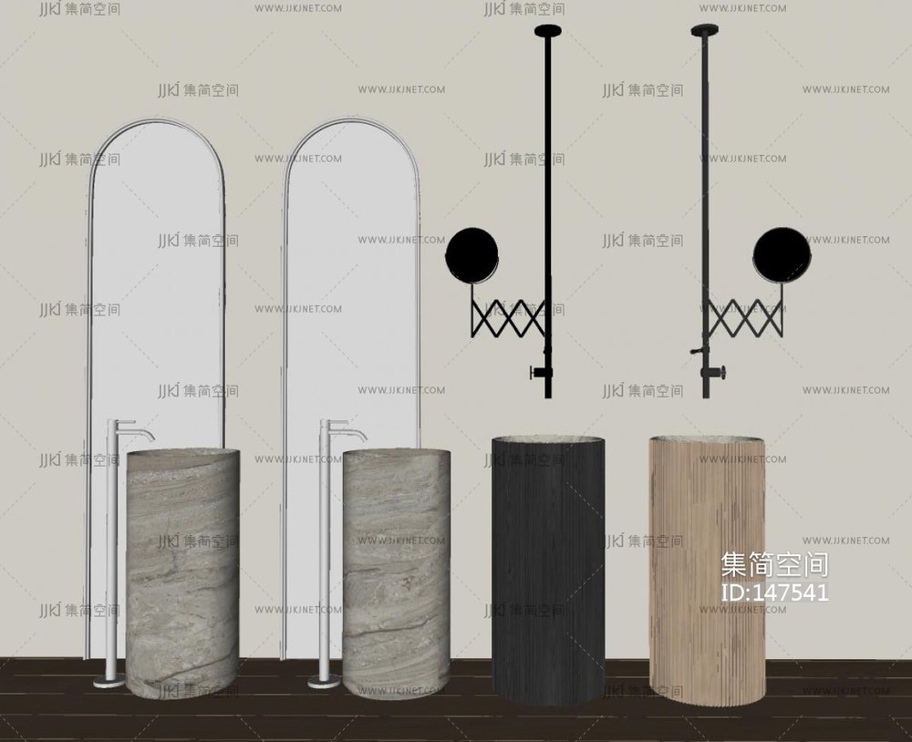 现代柱式台盆,镜子SU模型 su草图模型下载 [模型ID:147541]