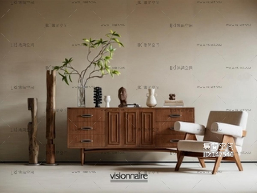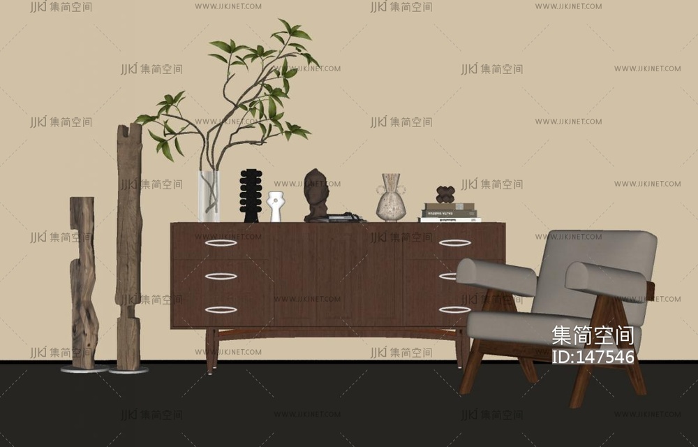 侘寂风装饰柜SU模型 su草图模型下载 [模型ID:147546]