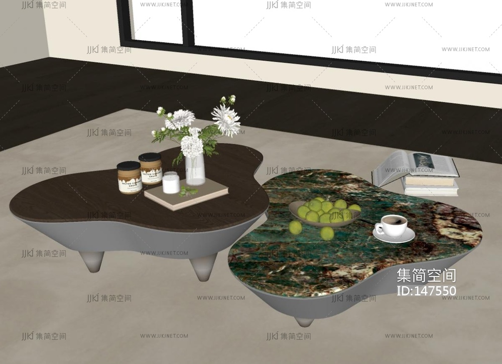 现代意式茶几SU模型 su草图模型下载