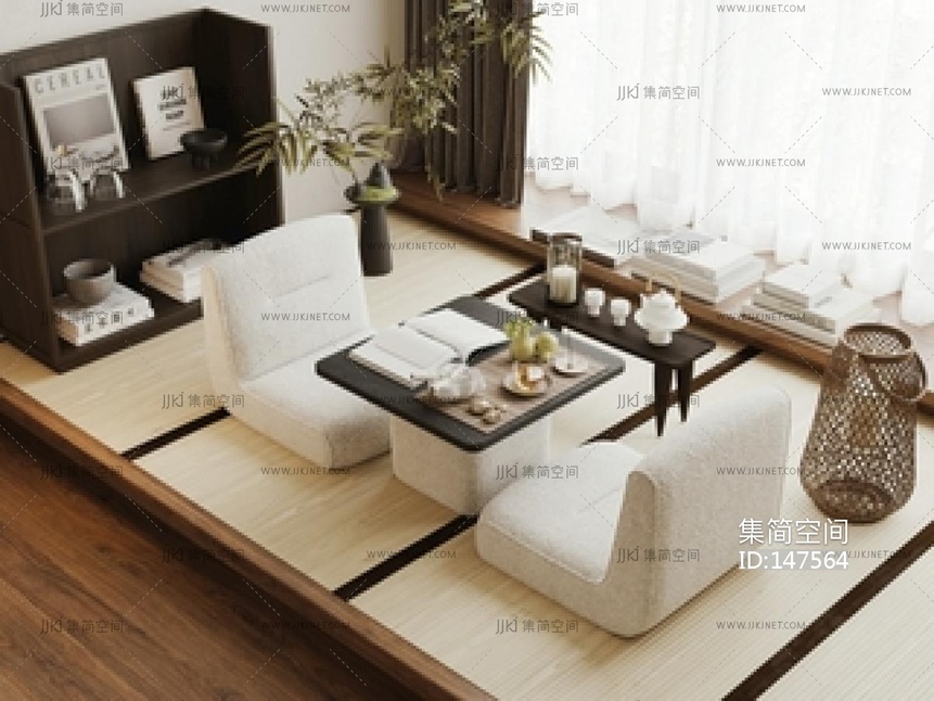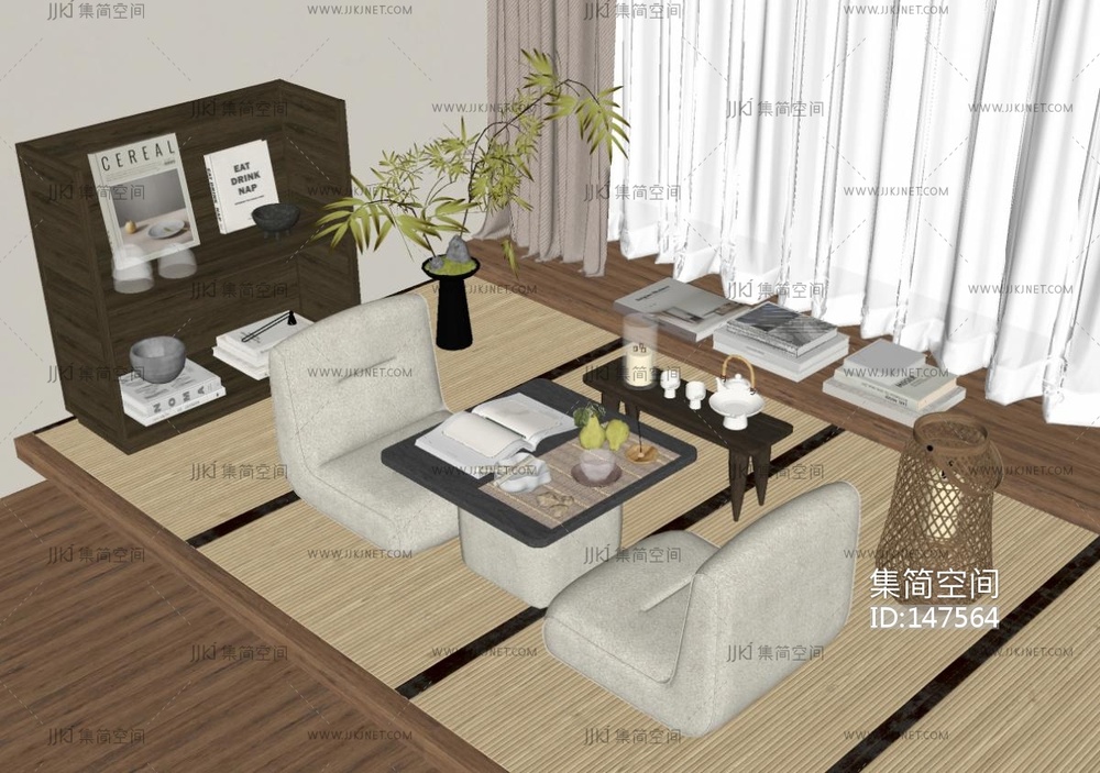法式飘窗茶桌椅SU模型 su草图模型下载 [模型ID:147564]