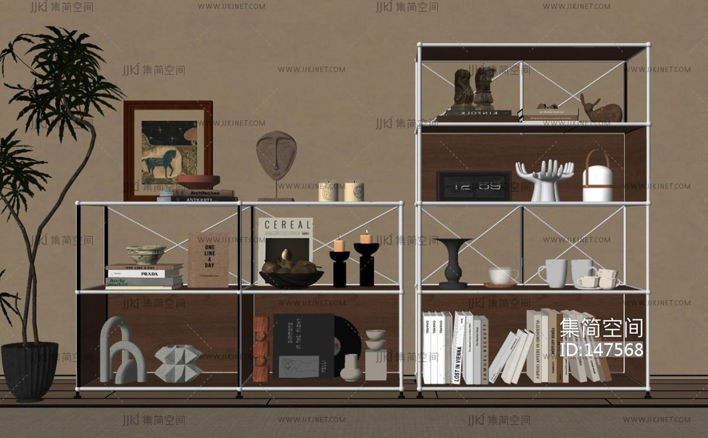 现代中古置物架SU模型 su草图模型下载 [模型ID:147568]