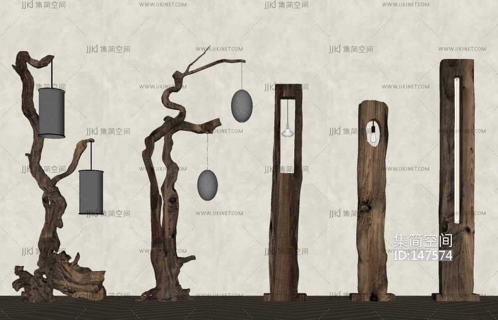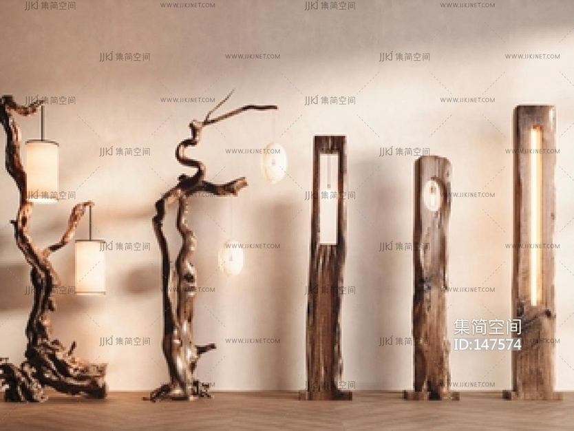 侘寂灯具组合_侘寂落地灯_落地灯_树枝灯_台灯SU模型su草图模型下载