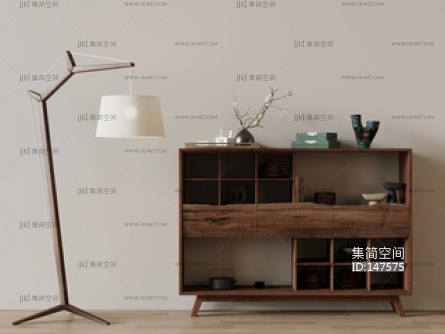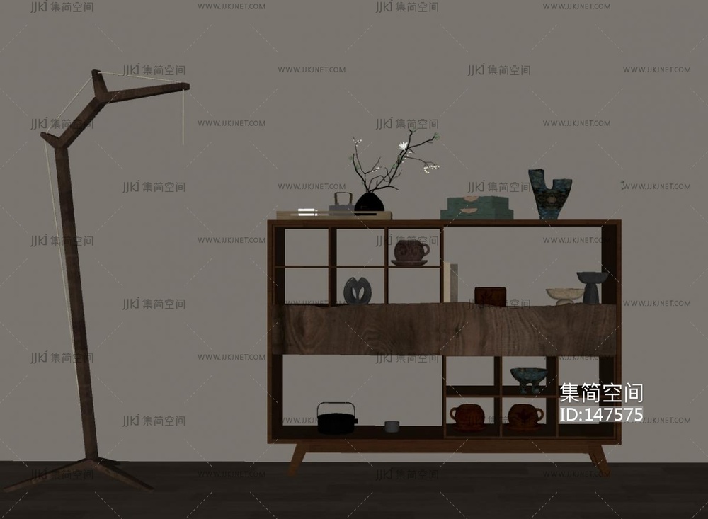 新中式茶柜SU模型 su草图模型下载 [模型ID:147575]
