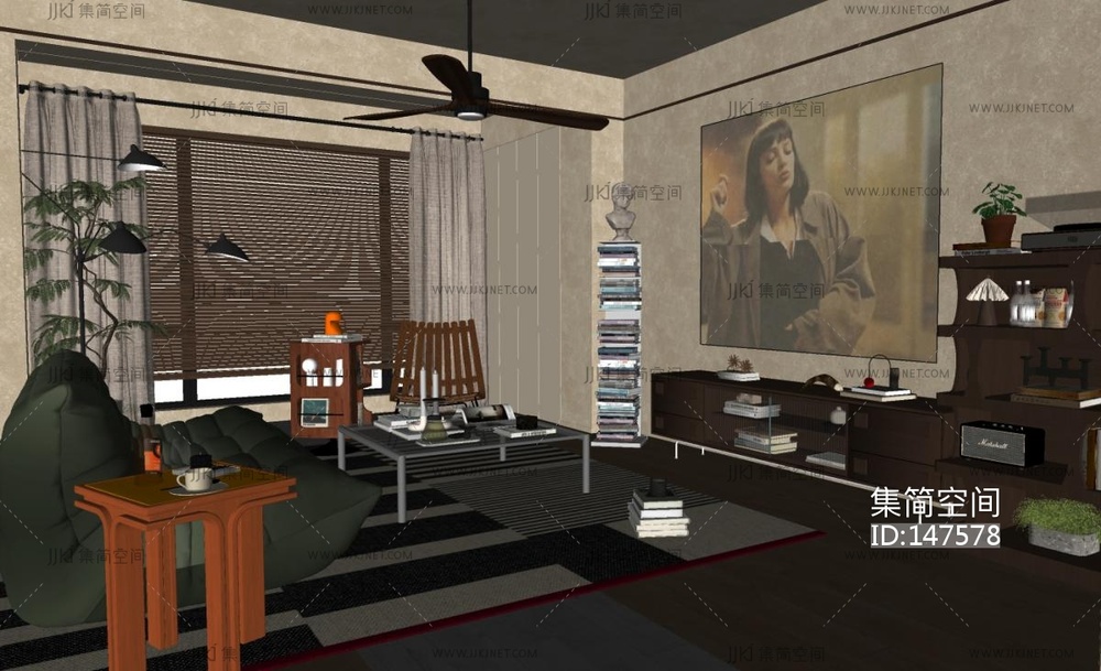现代中古家居客厅SU模型 su草图模型下载 [模型ID:147578]