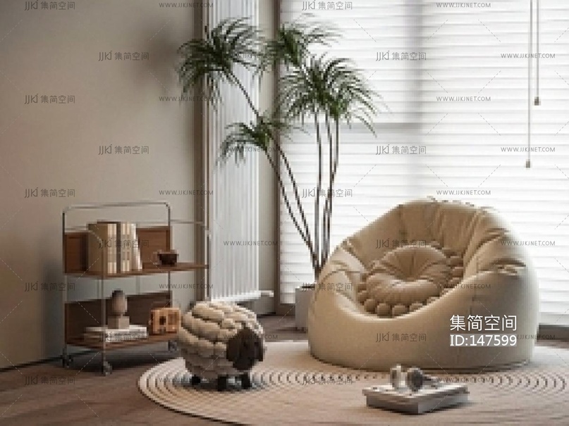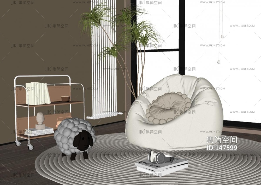奶油北欧懒人沙发SU模型 su草图模型下载 [模型ID:147599]
