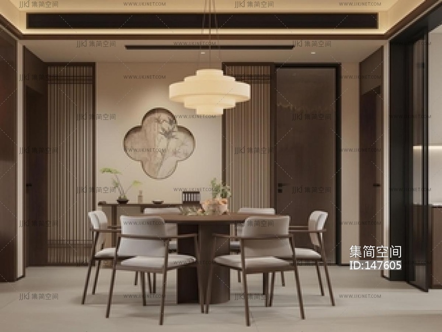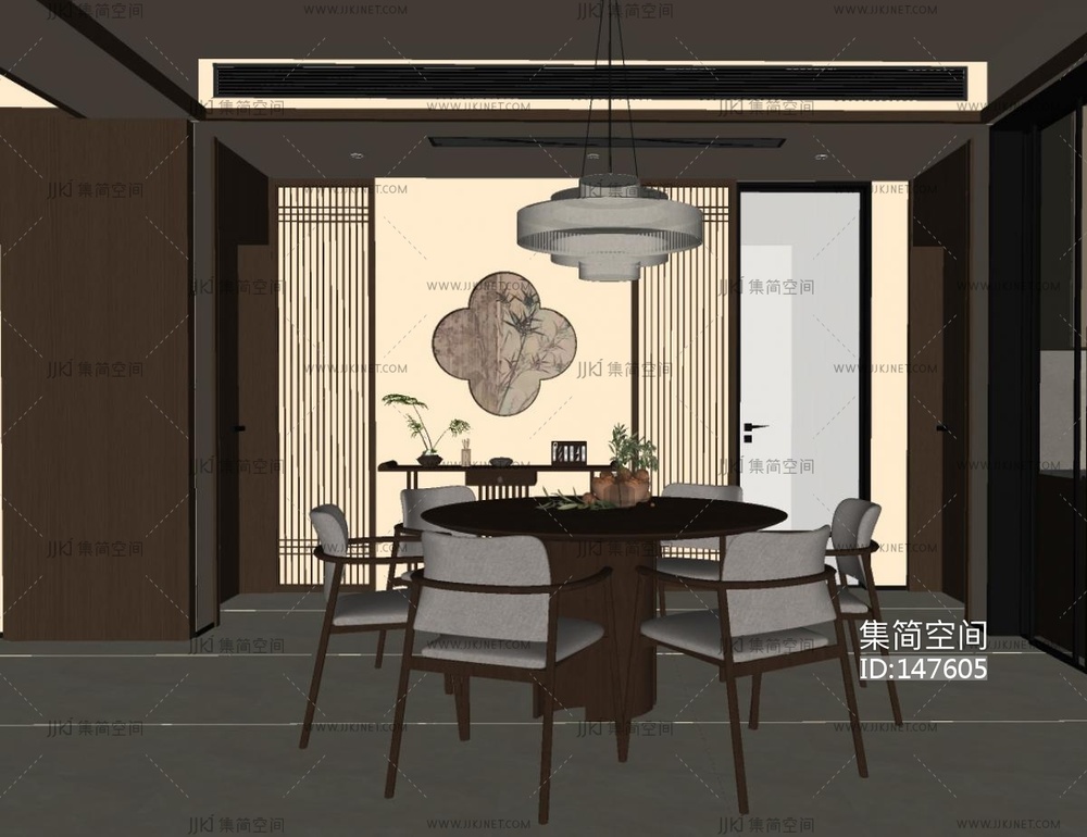 新中式家居餐厅SU模型 su草图模型下载 [模型ID:147605]