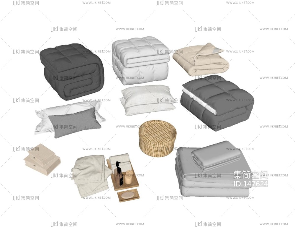 现代床上用品,,家纺SU模型 su草图模型下载 [模型ID:147624]