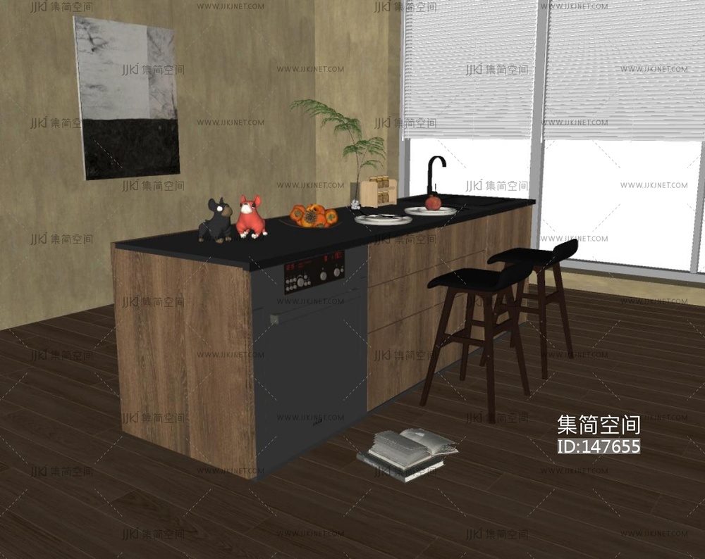 现代中岛台吧台,吧椅SU模型su草图模型下载