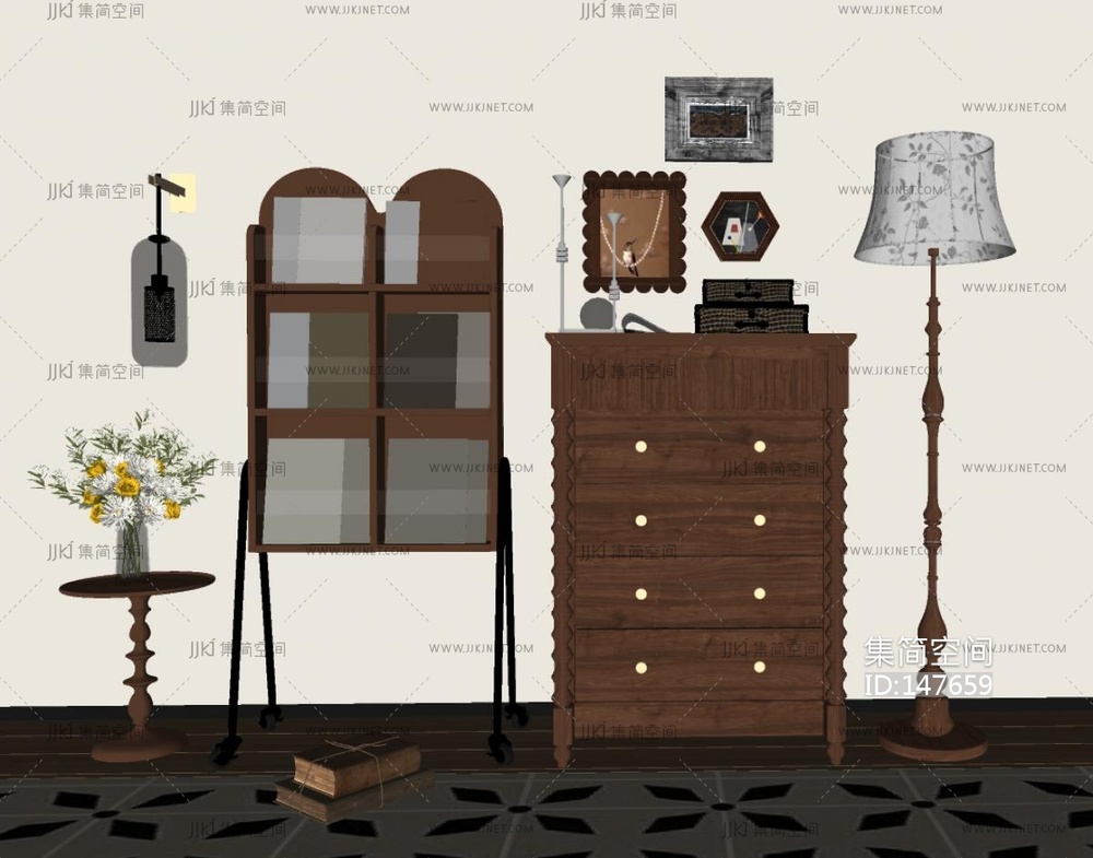 中古侘寂储物柜SU模型 su草图模型下载 [模型ID:147659]