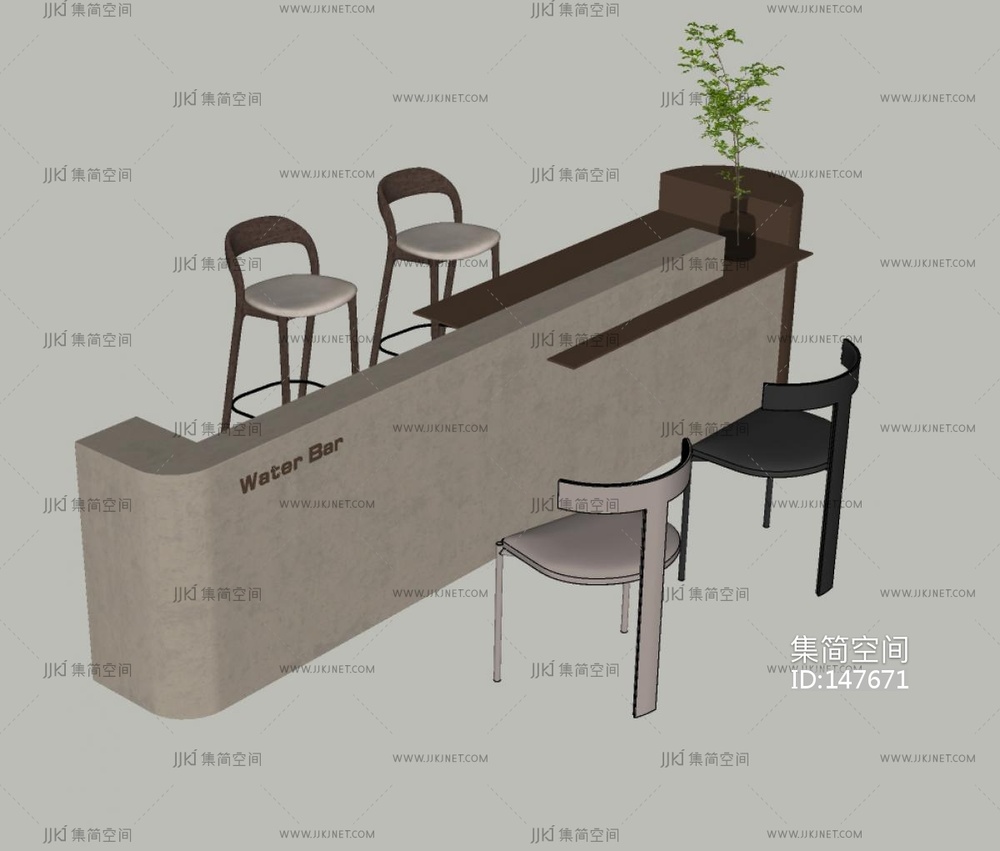现代咖啡厅_现代咖啡厅吧台su草图模型下载
