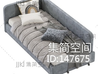 现代奶油单人床SU模型 su草图模型下载 [模型ID:147675]