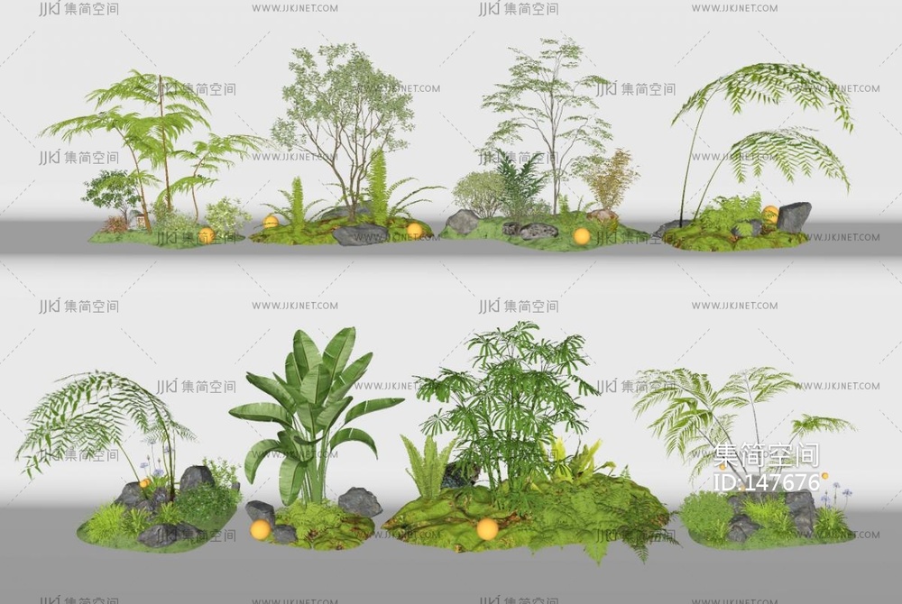 现代庭院小品_室内景观造景SU模型su草图模型下载