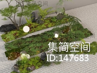现代庭院小品_室内景观造景SU模型su草图模型下载