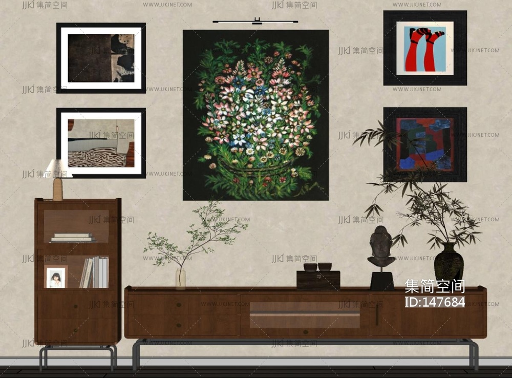 现代中古风电视柜SU模型 su草图模型下载 [模型ID:147684]