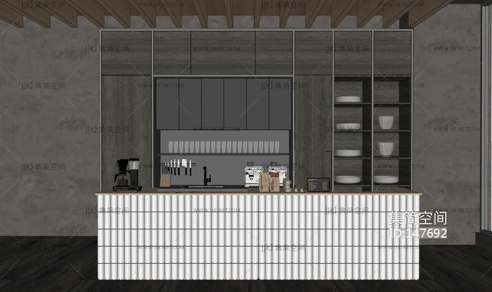 现代咖啡前台服务台 su草图模型下载 [模型ID:147692]
