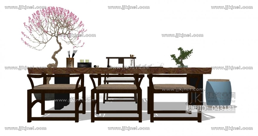 20新中式茶桌椅植物鼓凳椅子 su草图模型下载 [模型ID:43181]