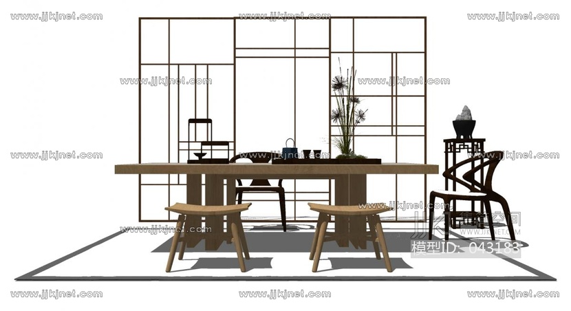 22-新中式茶桌椅茶具椅子花架组合 su草图模型下载 [模型ID:43183]