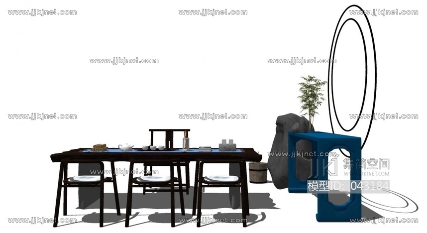 30-新中式茶桌椅组合摆台茶具 su草图模型下载 [模型ID:43184]