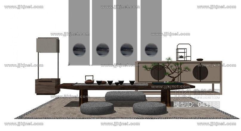 33-新中式泡茶桌椅桌椅挂画玄关柜摆台组合 su草图模型下载 [模型ID:43188]