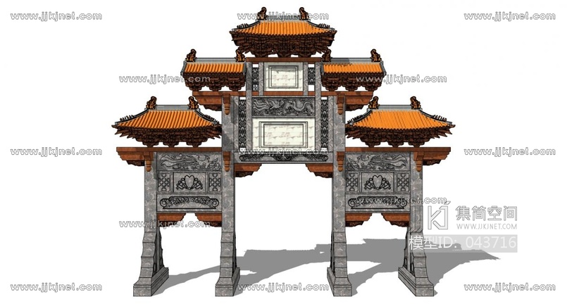 中式古建牌坊牌楼 (20) su草图模型下载 [模型ID:43716]