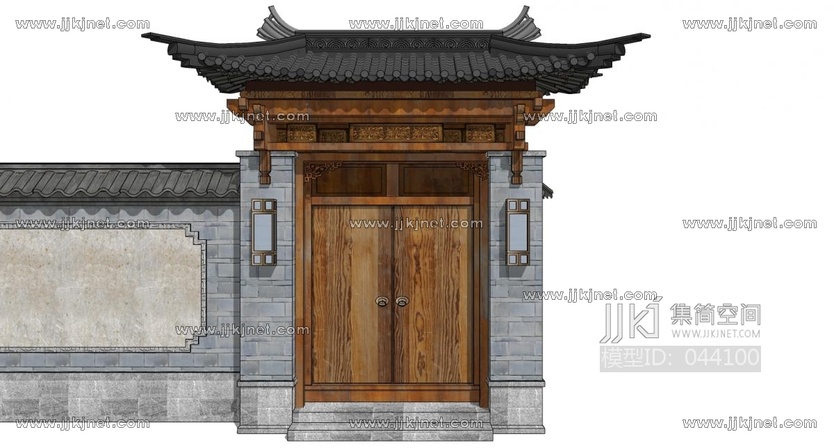 中式别墅庭院建筑大门门楼 院墙 门头(5) su草图模型下载 [模型ID:44100]