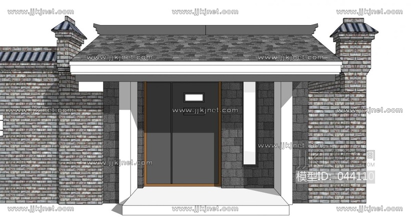 中式别墅庭院建筑大门门楼 院墙 门头(15) su草图模型下载 [模型ID:44110]
