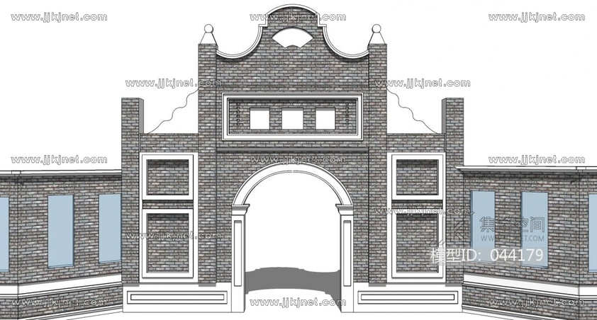 民国风门头su草图模型下载