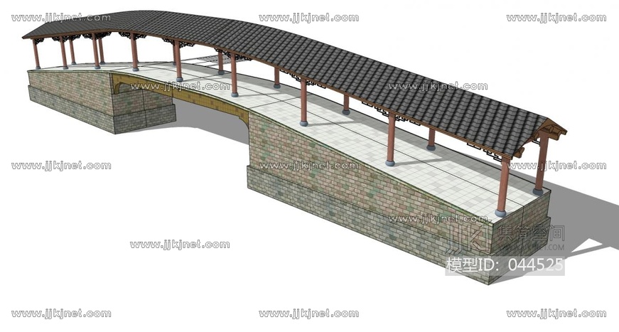 中式古建凉亭连廊桥 (2) su草图模型下载 [模型ID:44525]