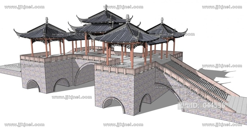 中式古建凉亭连廊桥门楼 (3) su草图模型下载 [模型ID:44536]