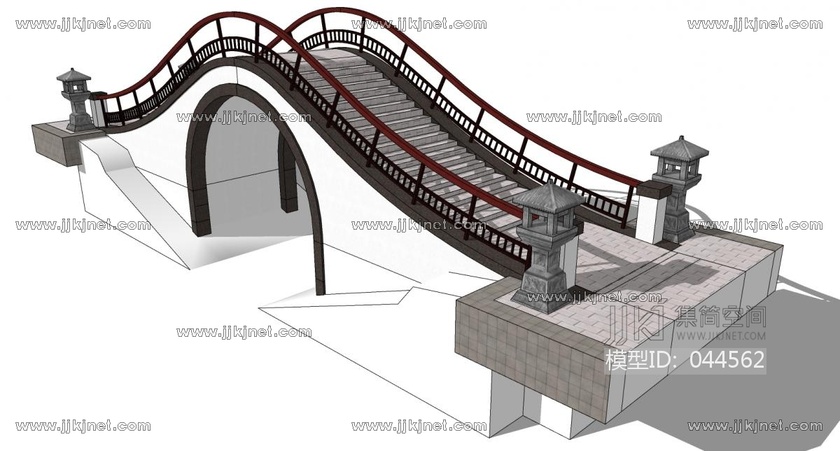 中式景观木拱桥 (10) su草图模型下载 [模型ID:44562]