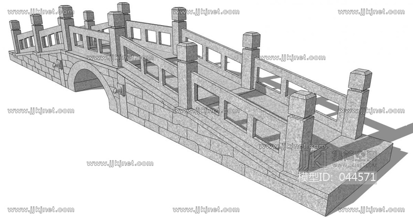 中式景观石材栏杆拱桥 (3) su草图模型下载 [模型ID:44571]