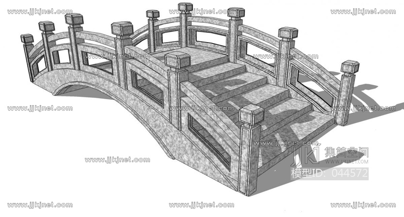 中式景观石材栏杆拱桥 (4) su草图模型下载 [模型ID:44572]