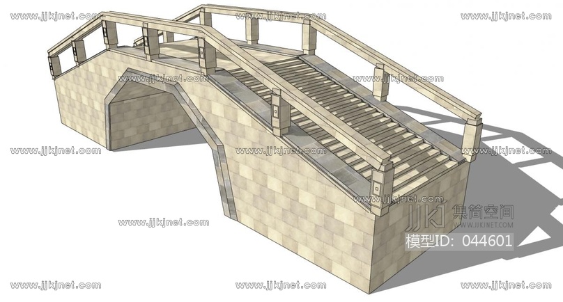 中式景观石材栏杆拱桥b (3) su草图模型下载 [模型ID:44601]