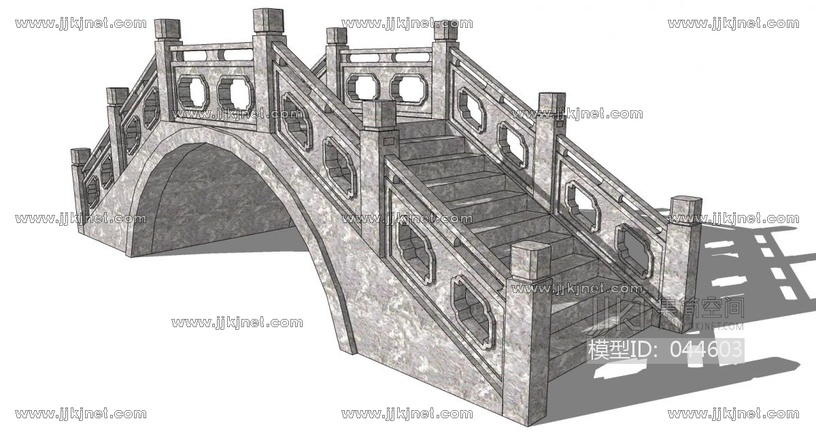 中式景观石材栏杆拱桥b (5) su草图模型下载 [模型ID:44603]