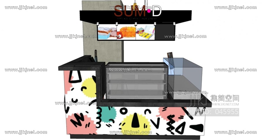甜品店蛋糕店木制货架 糕点 su草图模型下载