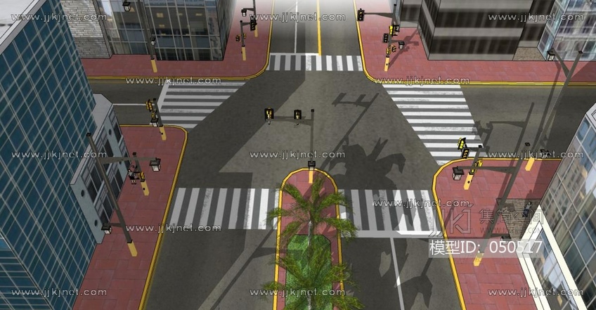 繁华道路景观路口交通信号灯红绿灯路灯车辆警车小汽车公交车斑马线路口指示标志路灯 (13) su草图模型下载 [模型ID:50517]