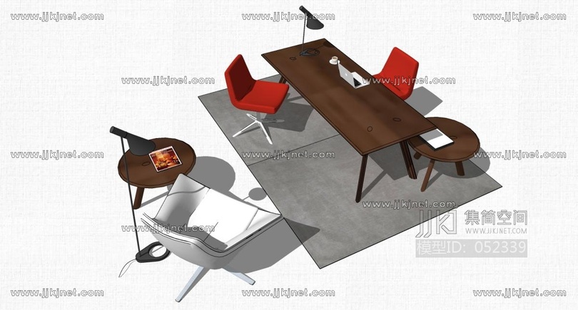 现代北欧圆形休闲洽谈桌椅子办公桌老板台a SketchUp(1) su草图模型下载 [模型ID:52339]