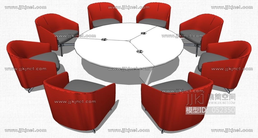 现代圆形会议洽谈桌椅 (3) su草图模型下载 [模型ID:52350]