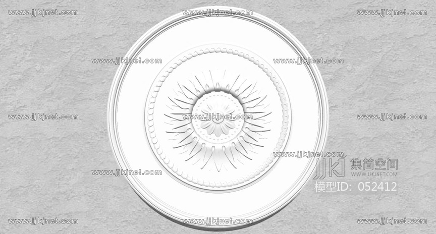 欧式法式圆形石膏雕花灯盘灯座 (2) su草图模型下载 [模型ID:52412]