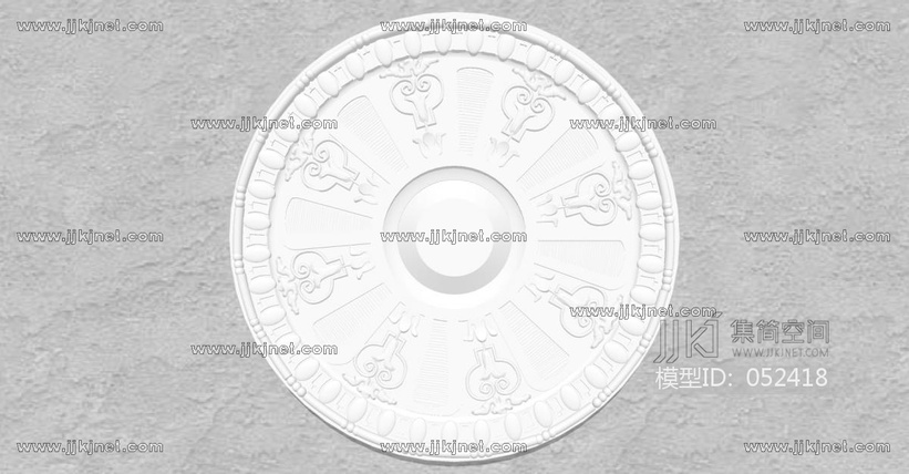 欧式法式圆形石膏雕花灯盘灯座 (7) su草图模型下载 [模型ID:52418]