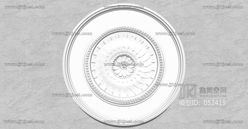 欧式法式圆形石膏雕花灯盘灯座 (8) su草图模型下载 [模型ID:52419]