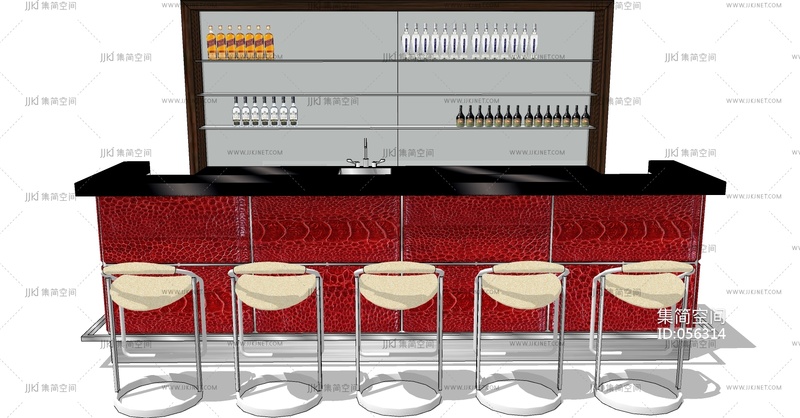 (10)现代简约橱柜水槽吧台吧椅储物柜酒柜酒瓶 su草图模型下载 [模型ID:56314]