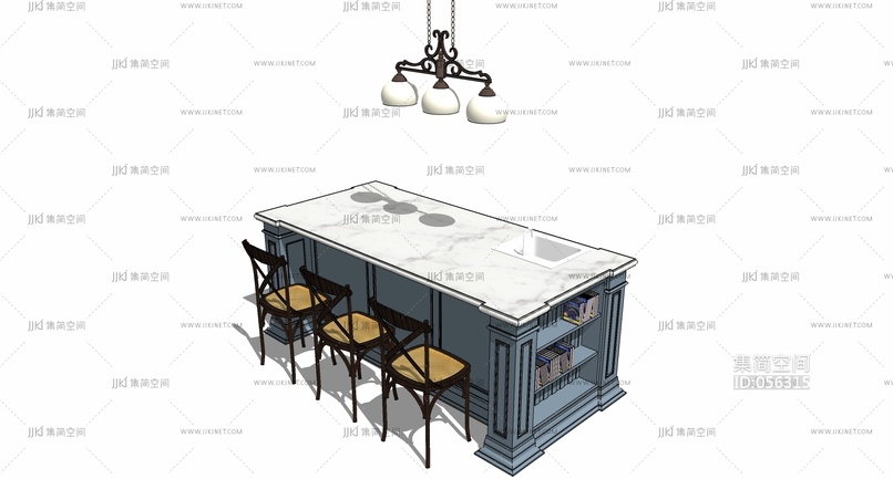 (11)欧式美式地中海橱柜中岛岛台椅子吊灯 su草图模型下载 [模型ID:56315]