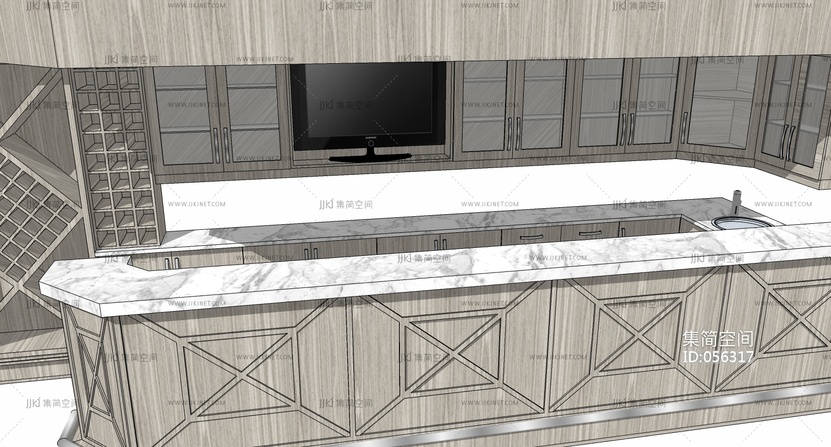 (13)现代欧式木制简约橱柜厨房中岛岛台 su草图模型下载 [模型ID:56317]