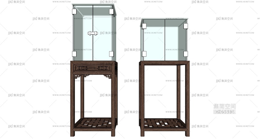 (16)中式木质雕花展厅首饰展柜展架展台 su草图模型下载 [模型ID:56318]