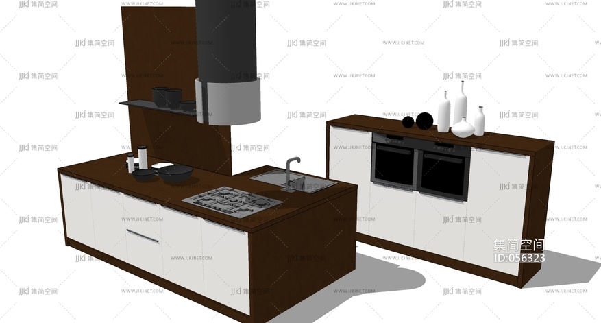 (17)现代简约橱柜厨房用具水槽烤箱吸油烟机 su草图模型下载 [模型ID:56323]