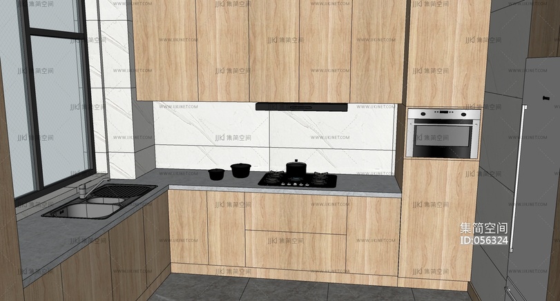(18)现代简约橱柜厨房用具水槽烤箱燃气灶 su草图模型下载 [模型ID:56324]