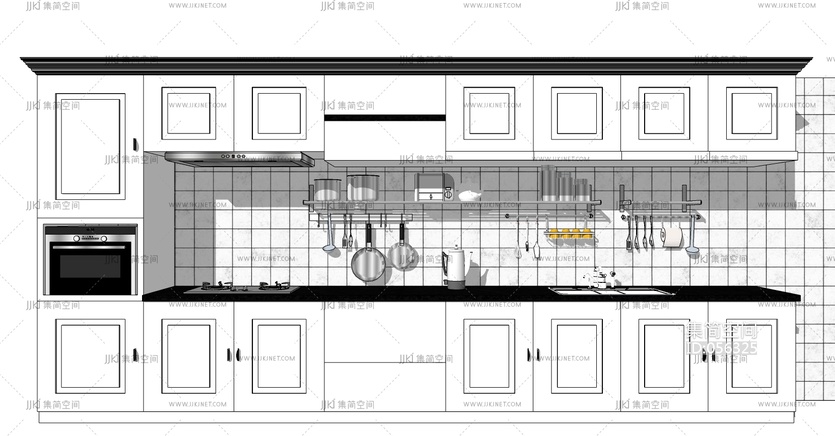 (1)简欧式橱柜烤箱燃气灶水槽吸油烟机厨房用具摆件 su草图模型下载 [模型ID:56325]