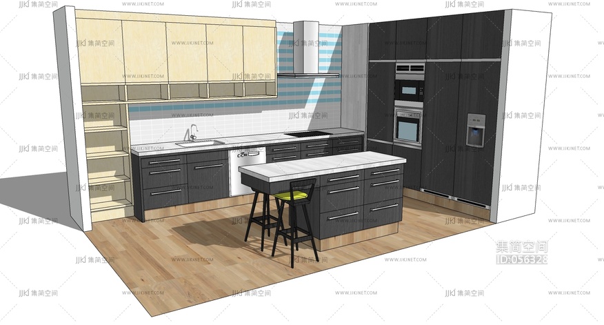 (6)现代简约地中海橱柜厨房用具水槽烤箱微波炉吸油烟机组合岛台中岛 su草图模型下载 [模型ID:56328]