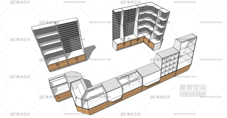 (40)现代展台储物柜组合 su草图模型下载 [模型ID:58155]